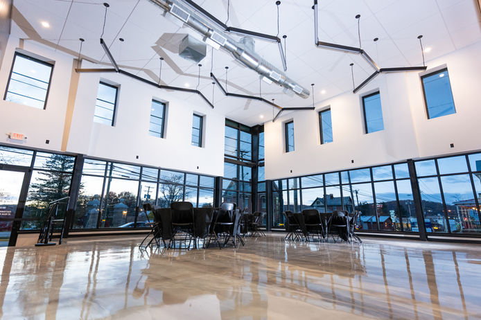 Our primary event space can host 80 of your closest friends and family. With 3 entrances: one that leads from the parking and reception area, one from the front of the building off Main St. and then our large glass garage style door great for loading and unloading rental items and decor.